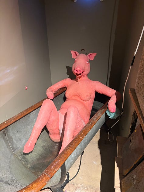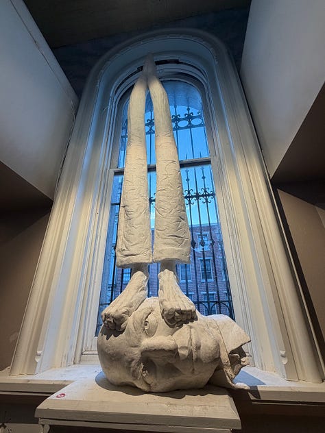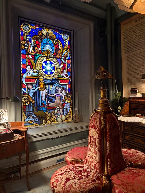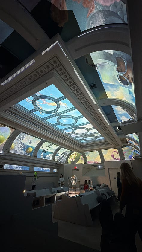 Last Thursday, I went to Philadelphia’s newest museum, the Ministry of Awe, located on 3rd street between Market and Arch over in Old City, which opened March 14th—and had an experience that truly evades words. Less an art venue than a six-story philosophical apparatus disguised as an immersive playground, the MOA is the brainchild of internationally renowned muralist and public artist Meg Saligman, who reimagined the decommissioned 19th century bank to explore how the idea of value can be destabilized and re-authored in strange, thought-provoking ways. Replacing money is the human spirit, as visitors are invited to deposit not currency but fragments of themselves at various junctures: memories on deposit slips, words in a directory, gestures in a photographic mirror, even meditations on mortality through a telephone. Moving through its shifting maze of installations, replete with performance artists and reactive rooms, visitors vacillate between wonder and worry—encountering spaces that simulate death, confession, and afterlife alongside stimulating spectacles of the surreal—until sublimity, awe itself, becomes the governing principle. And a governing principle it was: I was absolutely floored by some of the things I saw, heard, felt, and learned there, from alien basement-lurking sculptures and deathly piles of bones to beautiful stained-glass windows and massive, magnificent murals. My favorite room was on the very top floor, “The Heavens,” where one opens a door into an ethereal atrium whose walls and ceiling bear a hallucinatory holographic expanse overlooking a sea of sofas. Clouds scatter and shift into stars, brightening and darkening in tandem to observers’ movement, creating a space that I felt I could spend hours inside without tiring. “Awe is all around these walls” reads MOA’s mantra, and even that, after experiencing it firsthand myself, seems an understatement. I highly recommend it to everyone and personally cannot wait to go back.